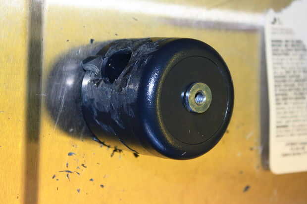 Otra vez el fabricante ha proporcionado a una guía para la perforación, pero tenga cuidado, ya que las estructuras internas empujará la broca centro vas a través de la parte inferior. Afinar el agujero para que las "pinzas" en el inserto tienen algún plástico para morder.