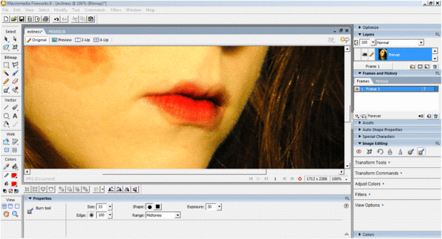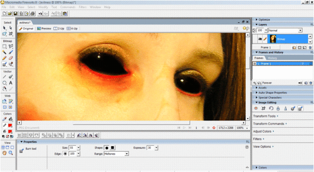 Una vez más utilicé la herramienta para resaltar por debajo de los ojos y la boca.  Quería darle su más "ojos negros" y labios rojos.