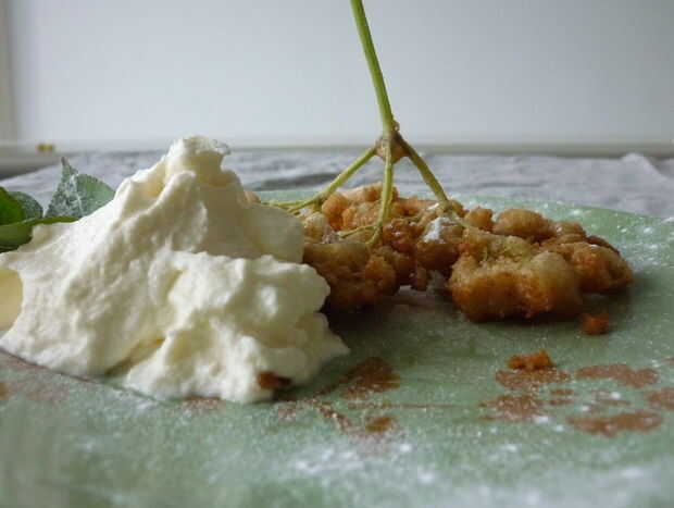 Flores de calabaza fritas rellenas de queso feta y albahaca
