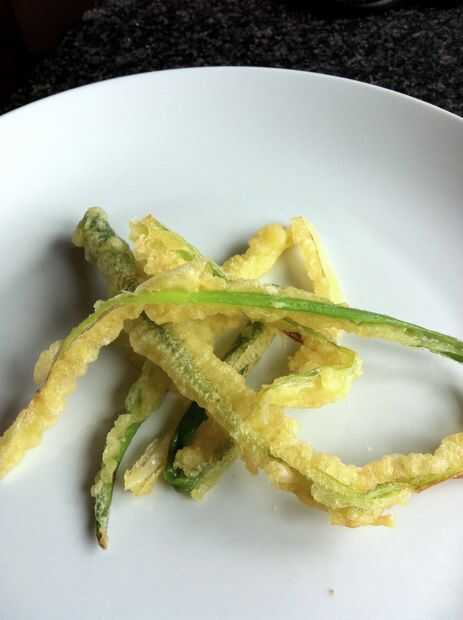 Cortó la cebolleta en cuartos lo largo para conseguir la cebolla-y muy pedacitos y las tapas verdes más suaves.  Aunque sabroso, creo que mucho del sabor de bonito cebolleta consiguió freído lejos.  En el futuro probablemente utilizaría una cebolla regular - cebolla roja probablemente sería encantador!