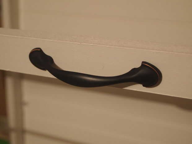Enrosque los pernos de la manija a través de la parte posterior del marco estante Secado y tornillo en la empuñadura. (Tuve que conseguir los tornillos más cortos, como los que siempre fueron hechos para material de 3/4" y 1").