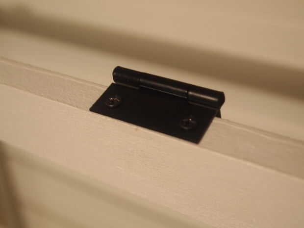 Perforar agujeros en el borde inferior de la Junta de la parte inferior del bastidor rack secado para las bisagras. Atornille las bisagras en la parte inferior del bastidor rack secado con los tornillos suministrados. Alinee el marco estante Secado en el bastidor del respaldo y marque con lápiz por los agujeros de la bisagra. Perforar agujeros en el tablero inferior del armazón trasero. Atornille las bisagras con los tornillos suministrados.