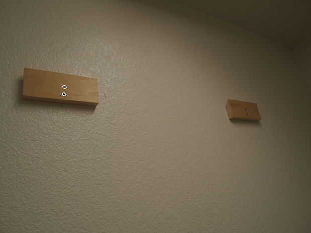 Perfore agujeros en la pared, va en los postes. Sujete el finales dos grapas a la pared con la superficie inclinada hacia arriba y el lado corto contra la pared.