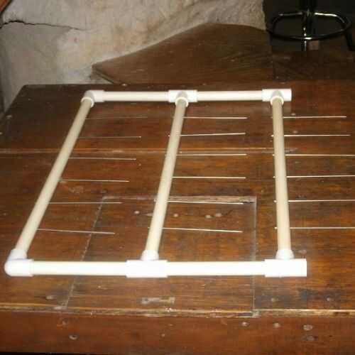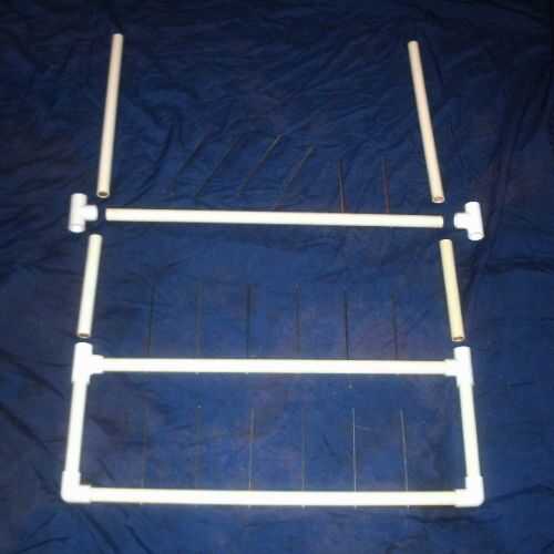 Las piezas laterales que separan los tubos horizontales son 7 pulgadas de largo. En este caso se calientan las piezas de la parte superior y doblado para hacer los ganchos agarre en un pedazo de varilla horizontal. Probablemente no tiene tuberías expuestas o varilla para colgar cosas. Si haces un bastidor, deberás adaptar el sistema de suspensión a su situación, montaje con tornillos, etc..