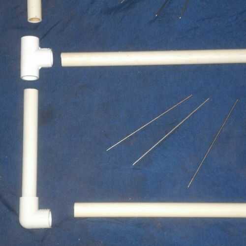 Aquí puede ver las partes establecidas. Estándar del PVC "T" y "codos" se utilizan para unir las piezas con cemento de PVC transparente. El cemento transparente se ve mejor que hace el cemento azul que también está disponible en las ferreterías.