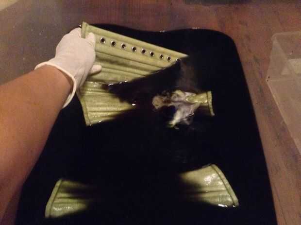 Colóquese usted guantes y añadir el corsé a la tintura.