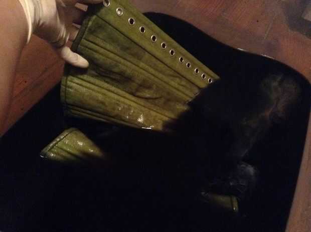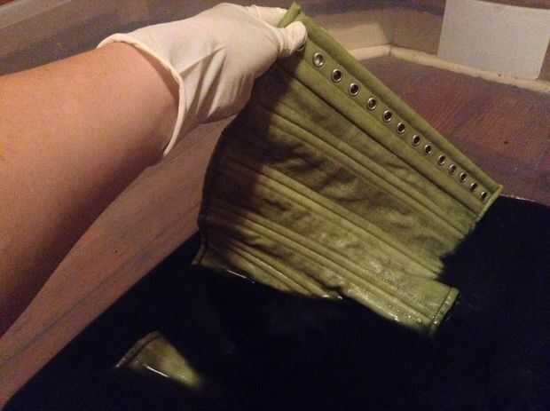 Totalmente sumerja el corsé y agítelo alrededor en el tinte.
