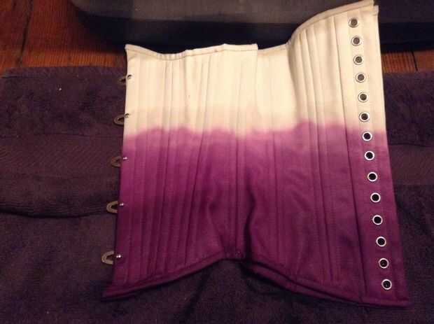 Para obtener un color ombre vintage. Primero había teñido el corsé en iDye "Crudo" y luego teñidos el corsé en Dylon "Violeta intenso".