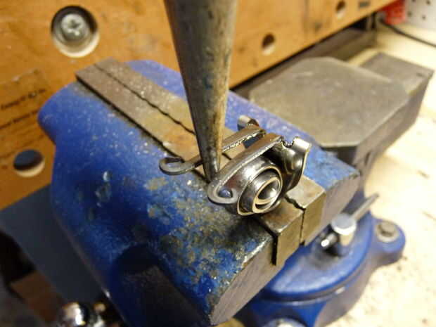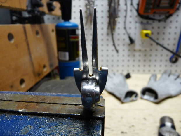 Un martillo o una pinza de su empuje con las puntas medianas hacia atrás para que queden casi paralelo con el rizo, pero no del todo.