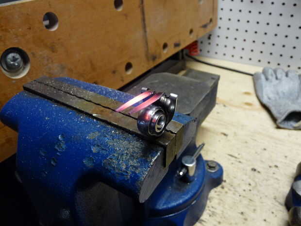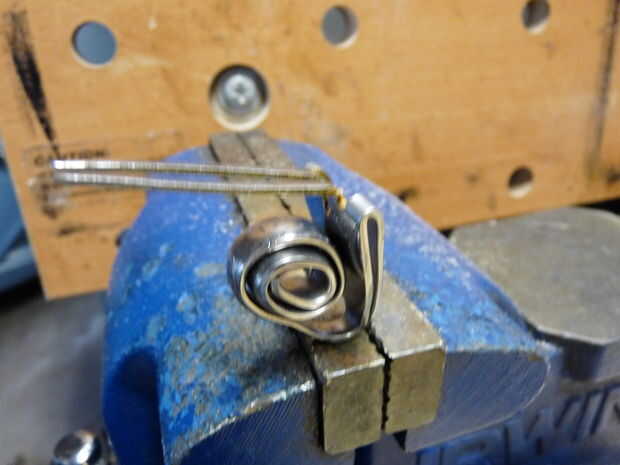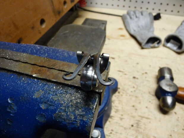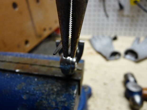Utilizan la punta de los alicates de punta delgada para rizar el tallo. Repita el proceso para el otro lado. Usando la antorcha colores el acero y hace más fácil dar el caracol rizos.