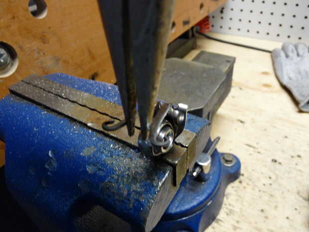 Vuelva a colocar el caracol en la prensa para que la cola está pellizcada entre las pinzas.
