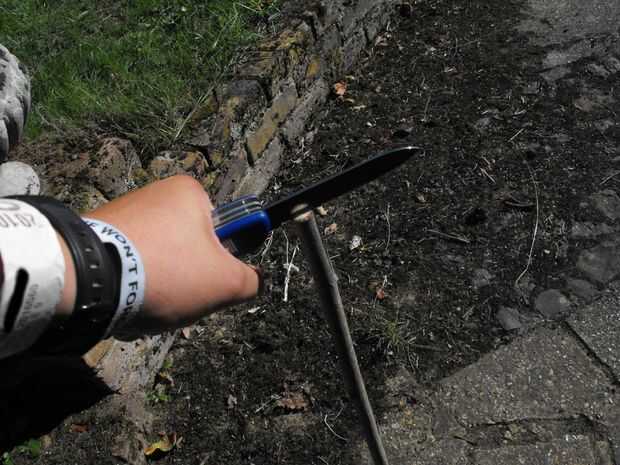 Tomar el palo más grueso y manténgalo verticalmente. Dividirlo aproximadamente 4 pulgadas abajo desde el extremo. Mantendremos los dedos claro, porque de repente puede dar, y el cuchillo podría derribar. Mantenga el palo vertical con el cuchillo en el extremo y golpee la parte posterior hasta que empieza a dividir.