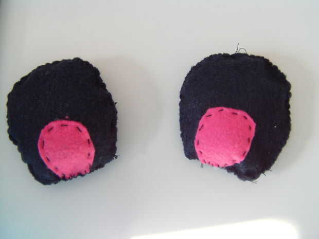 Sólo estoy mostrando cómo hacer las orejas, pero para fijar a una sudadera con capucha, simplemente pin el oído donde usted lo desee en la línea de la capucha y coser un stich corriente transversal para asegurarla o una puntada de manta apretada.