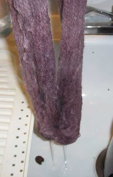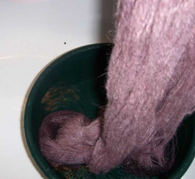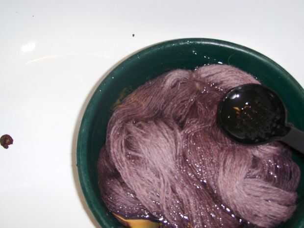 Dejar para escurrir sobre el lavabo (usted notará el agua no es clara y así el hilo debe ser aclarado)