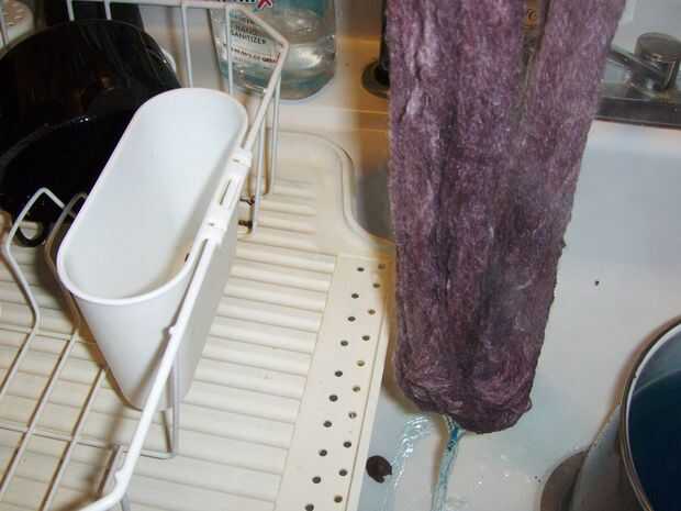 Con cuidado sacar el agua de hilado y colgar para secar, exprimir periódicamente el exceso de agua de la parte inferior de la madeja. Se tarda aproximadamente un día para secarse en invierno.