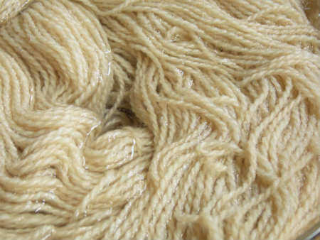 Llenar un bol con agua muy caliente y añadir una copa de vinagre. Colocar el hilo en el agua y empuje hacia abajo para sumergirse pero no moverse. Remojar el hilo durante unos 30 minutos.