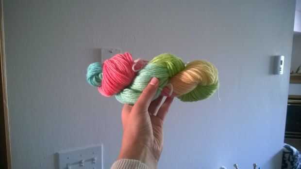Con todos los pasos, después de que han dejado que su fresca de hilado para el tiempo final, tienes que aclararlo y lavarlo suavemente con el lavado de la lana. Asegúrese de que el hilo está muy bien. Si usted descarga el hilo caliente con agua fría, se sentía el hilado, que no queremos que pase. Al teñir con una olla, esperé hasta que el agua era tibia, en lugar de completamente fría. Después de enjuagar, colgar el hilo hasta un lugar para secar. Ahora está listo para usar para lo que quieras!