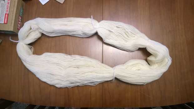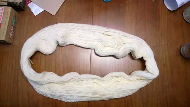 Asegura mi hanks atar hilo basura a su alrededor. Mientras que usted no tiene que hacerlo, lo hice para asegurar que mi hanks no se enrede en el proceso de teñido. La última cosa que quieres hacer es desenredar el hilo después de se tiñe y listo para usar.