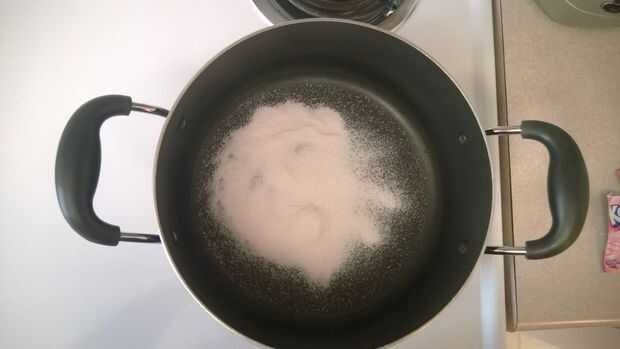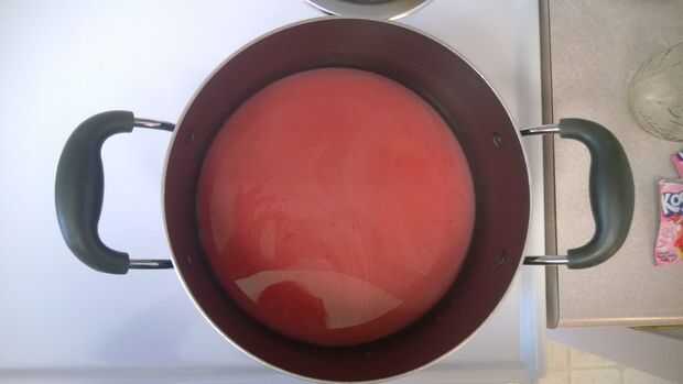 Ahora pones tu elegido Kool Aid en una olla grande. Como he dicho antes, usted quiere un paquete por onza, así que utilicé cuatro paquetes para este teñido. No te preocupes poner demasiada agua sin embargo, sólo hay que poner bastante para que puede disolver el Kool Aid en el agua. Se va añadiendo más agua en una vez que pones el hilo en.