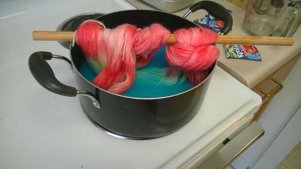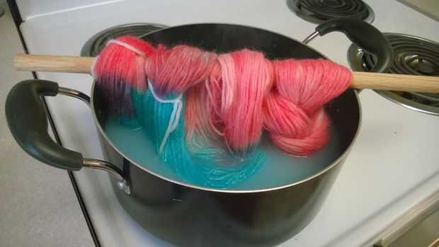 Si desea teñir sus hilo dos colores diferentes, siga los mismos pasos como teñir el hilo de un color tonal, excepto que no ponga todo de hilado. Después usted teñir parte del hilo del primer color, deja que se enfríe, luego enjuague el hilo y vaciar la olla. Luego añadir el segundo color en el bote y atar el hilo de modo que ahora se exponen las partes sin teñir del hilado para el segundo color.