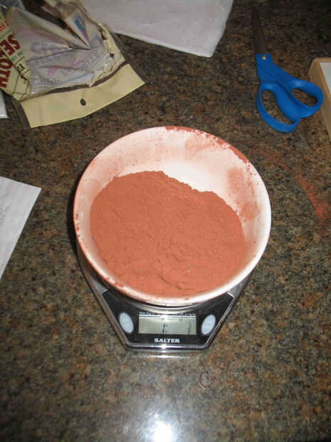 Estoy usando dos bolsas ya yo he duplicado la receta para teñir dos libras en lugar de uno. Asegúrese de que el polvo no se abarrota en el bolso de tinte para que el agua pueda penetrar el polvo. No cometas el error que he hecho por sólo verter el polvo en el baño de tinte sin poner el polvo en una bolsa de tinte. Si lo hace, su hilo se llenará con raíz de rubia y al tratar de hacer cualquier cosa con él, hará un tremendo lío.