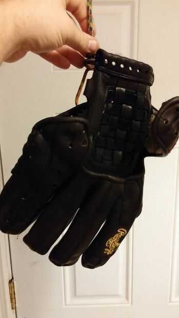 tener un guante de béisbol o guante que usted sólo se rompió en la forma que gusta? .. .la piel es suave y finalmente son corrales que bola a tercera base... ¿Pero los cordones romperán o quitar uno de los agujeros? O su hijo ha pasado por su tercer