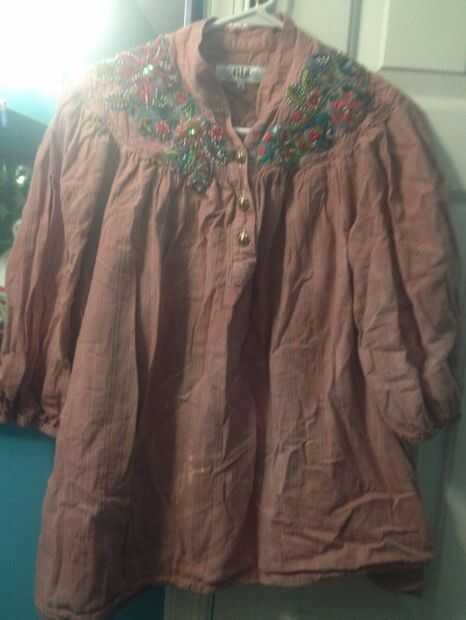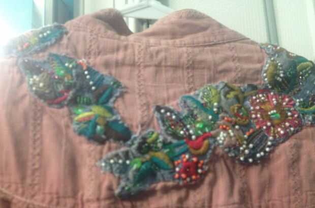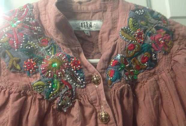 Tengo una tapa que modifiqué hace unos años. Era un gran vestido blanco de Tibi que compré en una tienda de segunda mano. Había teñido rosa y cosido en mezclilla bordado que venía de un par de jeans de mi mamá. Luego cortar suficiente tela para dejar en una longitud de túnica y dejar los bolsillos funcionales.