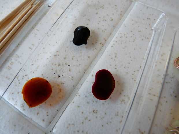 Coloque un par de gotas de cada color en su paleta. No dejes que toque. Vierta una pequeña cantidad de diluyente en otra área o en un recipiente pequeño.