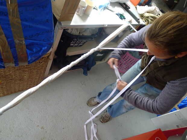 También conocido como shibori poste-envoltura, shibori arashi ("tormenta" en japonés) es una técnica de tinte japonés que se traduce en franjas diagonales que recuerdan de la tormenta por lluvia. Voy a demostrar un patrón muy básico con sólo dos