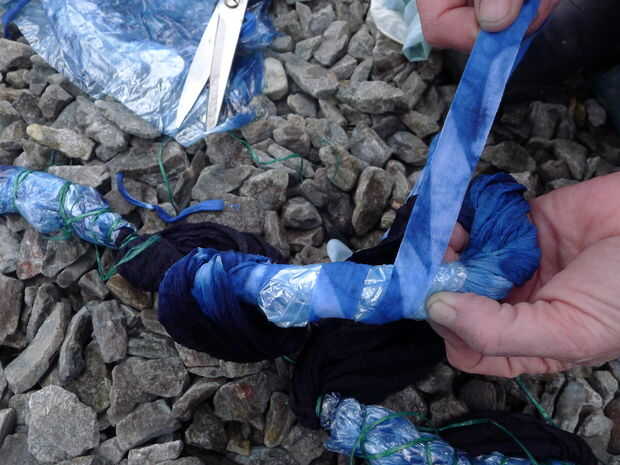 En esta foto de la pieza ha un sido teñido cinco veces y el proceso de desenvolver.