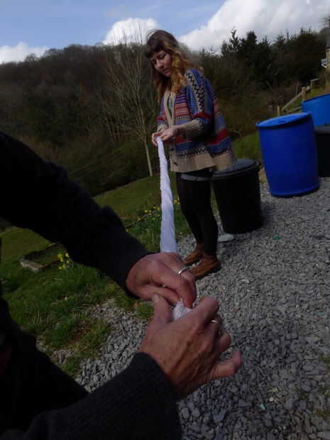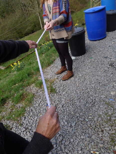 Cuando completamente obligado la longitud va a querer contratar. Coloque el dedo en el centro y unirse a un extremo, su socio ahora tiene ambos extremos.