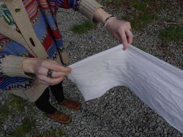 También conocido como shibori poste-envoltura, shibori arashi ("tormenta" en japonés) es una técnica de tinte japonés que se traduce en franjas diagonales que recuerdan de la tormenta por lluvia. Voy a demostrar un patrón muy básico con sólo dos