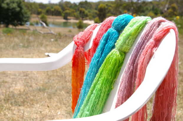 Itinerante del arco iris - teñido de lana con colorantes ácido
