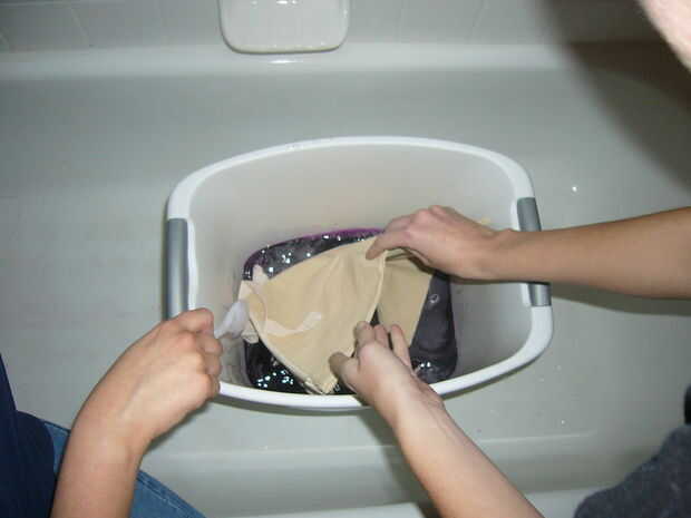 Nota: No introduzca las manos en el medio de contraste. Incluso una cantidad mínima de tiempo en el medio de contraste afecta a la piel. Pegué mis manos en el medio de contraste a la cuchara, que accidentalmente se me cayó en el tinte, y mis manos eran un poco moradas luego. Después de lavarme las manos dos veces, sin embargo, el tinte se fue.
