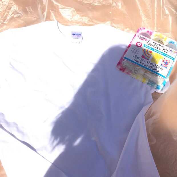 bien, ahí va una camisa perfectamente arruinada.Paso 1: Necesitarás. Una camiseta vieja.Tinte de la telaGuantesBandas elásticasLo ideal sería estar fuera dePaso 2: Escoge una camiseta vieja. Este es mi primer tinte del lazo. De todas las muchas difer