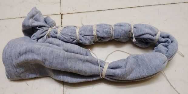 Había arrugado mi ancho conjunto camisa sabia y después sujételo bien con el hilo de atado. Seguí hasta que había atado en varios lugares con ninguna medida específica.