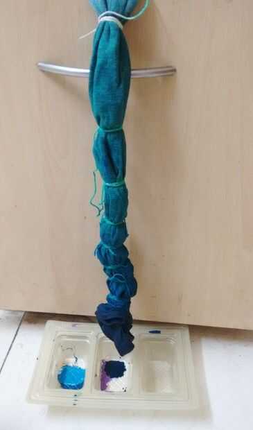Después de verde cruce 1/2 de nuevo en una solución de azul. Aquí es cómo parecía después de los dos primeros colores.