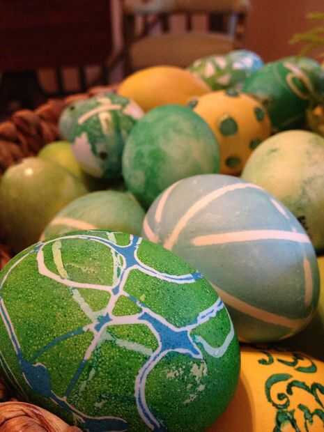 Teñir los huevos de Pascua con bandas de caucho y las pieles de cebolla!