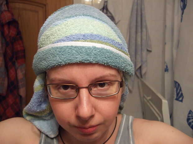 Luego cubre tu pelo con una bolsa de plástico y envolver su cabeza en una toalla.
