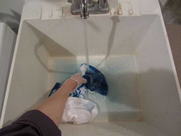 - Enjuague a la tela con agua fría hasta que la segunda vuelta es evidente.