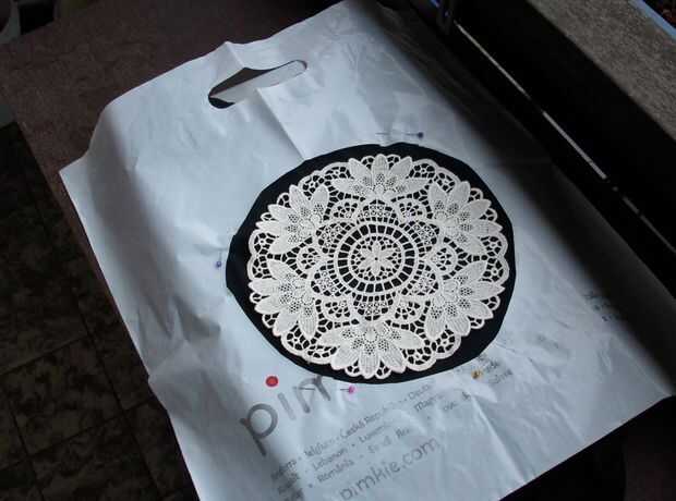 Si desea puede poner un marco alrededor de la servilleta como yo lo hice en la foto 2 (que tendrás que precisar un poco). Sólo corté un círculo fuera de una bolsa de plástico.