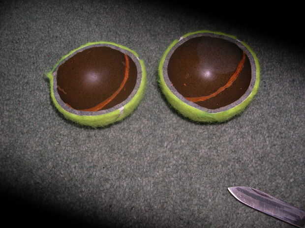 De tomar algo como un cuchillo de pluma o cuchillo stanley y cuidadosamente corte la pelota de tenis.