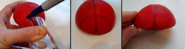 Trace una línea por el centro para crear las dos alas. Luego marcar la cabeza y la cola. Usé un vaso de chupito para dibujar el semicírculo de la cabeza. Mi línea es flojo mientras trataba de colocar de nuevo el balón después del trefilado.