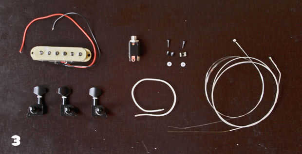 Piezas de la guitarra barata se pueden encontrar en internet, pero para mi primera guitarra de tenis simplemente fui a la tienda de música local y pregunté si tenían alguna sobras. Cuando terminé de explicar que tipo de tienda de música que no era (no realmente, no en todos) después de la lasagna que estaba salvando para el almuerzo, era muy fácil encontrar todas las piezas que estaba buscando. Cada tienda tiene un cajón lleno de piezas de la guitarra de mierda, porque guitarristas de lujo siempre quieren modificar su instrumento con pastillas mejor y dejar las viejas partes de la tienda. Si usted es afortunado, usted podría incluso conseguirlos gratis.