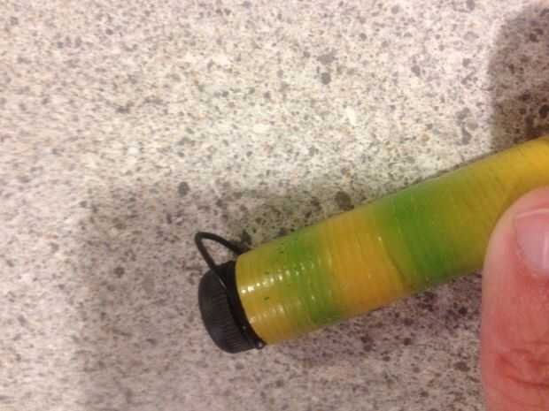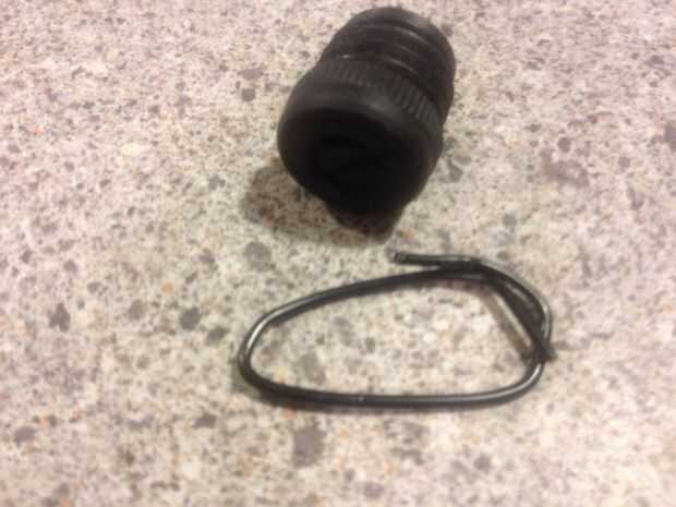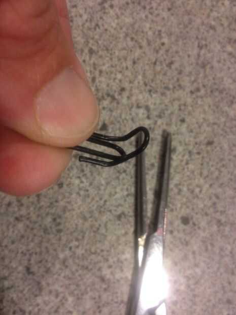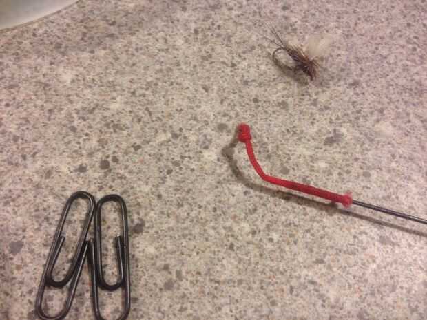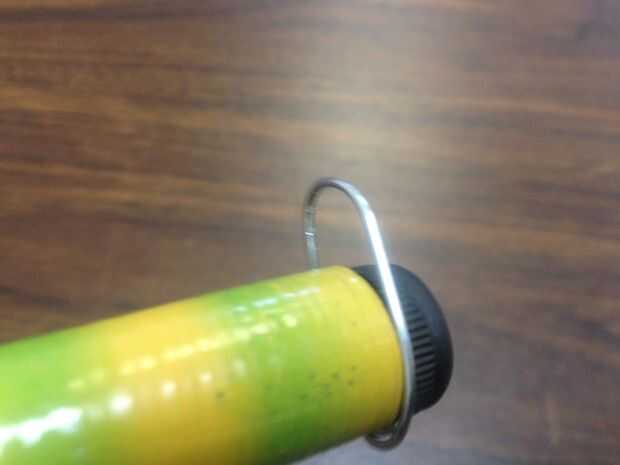 Tomar otro clip y enderezar hacia fuera, luego Desenroscar la parte inferior la cubierta de su Tenkara rod y doblar el clip en un aro oval, asegúrese de que es menor que 1" de diámetro. Desliza sobre la tapa y atorníllela en. Curva lejos de la punta de la varilla y se alinean con el otro clip.