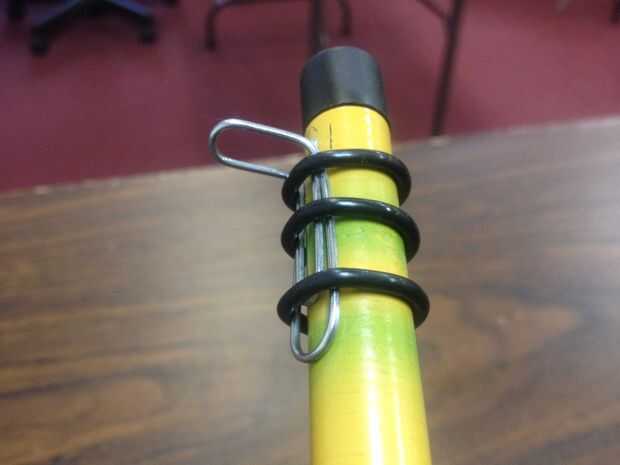 Doblar un clip de papel cerca de un ángulo de 90 grados y adjúntelo a su poste usando los orings.