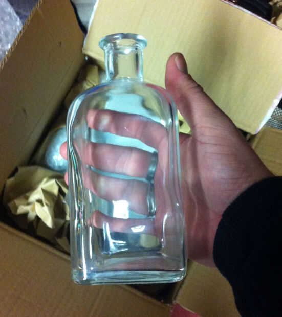 Después de buscar por ebay y varios proveedores de vidrio me decidí por una botella cuadrada ligeramente más pequeña que la botella de Jack Daniels pero es el mismo ancho un poco más corto, sólo una botella de 500ml, por lo que la etiqueta debe ajustarse. tuve un vistazo a algunas otras botellas y quería conseguir una botella de jarro con un mango de dedo pero no pude conseguirlos en un tamaño decente. También miré botellas nocturno pero no me gustó cómo llano parecía pero puedo usar para mi Ron, parecen más a una botella de ron estilo.