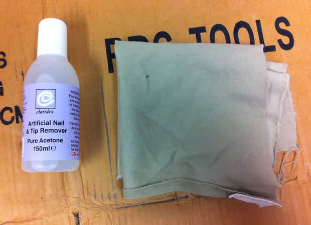 antes de que se pega la etiqueta en limpiar la botella con un trapo limpio y algunos acetona u otra bebida alcohólica para deshacerse de la grasa.