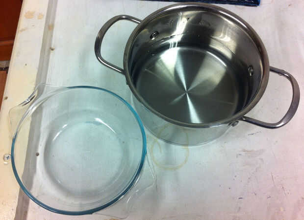 sólo hay que poner un recipiente en la parte superior de una olla llena de agua, sólo asegúrese de que es un tazón de fuente que puede calentar. cortar la cera en pedazos más pequeños y poner unos pedacitos en el y esperar a derretir luego añadir más. Tenía 1kg de cera. no ser tentados a usar velas de cera en ellos es frágil y con la ruptura, elijo la cera queso porque su flexible y no desprenderla.