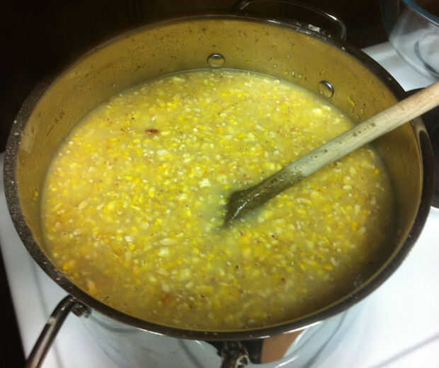 para evitar quemar o lo queme necesario para mantener la mezcla moviendo para que no en la parte inferior para demasiado largo a la vez, no sólo chuck lo en y dejarlo. también que no desea cocinar demasiado rápido como esto también lo quemará y lo no licuar el almidón en el maíz o será en parte pero no todo.